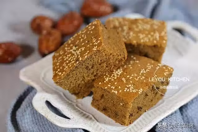第一步:準備食材。紅棗120克、低筋麵粉180克、雞蛋4個、白砂糖80克、玉米油40毫升、泡打粉5克、小蘇打3克、白芝麻適量。