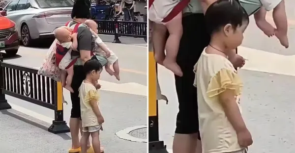 路遇一媽帶3娃!右手牽+肩上扛+懷裡抱…眼尖網友發現「關鍵細節」怒轟:不如不生