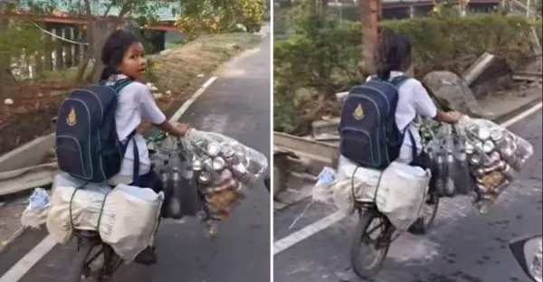 父母雙亡!9歲小女孩上下學騎車撿瓶子賣錢「幫阿姨扛家計」網友贊:懂事的讓人心疼