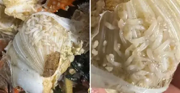 螃蟹蒸熟後打開「一肚白蛆」瞬間倒胃口,她火大PO照「連鍋一起扔了」網狂刷不識貨:水質好才有