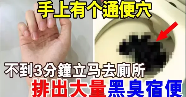 便秘10天拉不出,手上有個通便穴,不到3分鐘立馬去廁所,排出大量黑臭宿便!