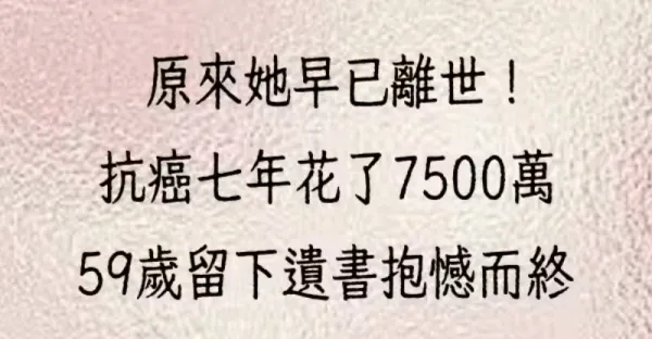 原來她早已離世!抗癌七年就花了7500萬,59歲留下遺書抱憾而終
