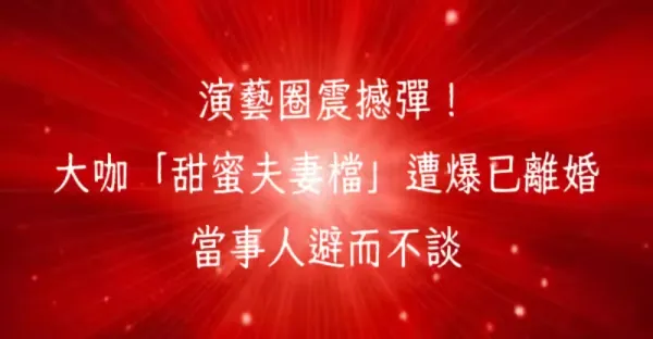 演藝圈震撼彈!大咖「甜蜜夫妻檔」遭爆已離婚 當事人避而不談