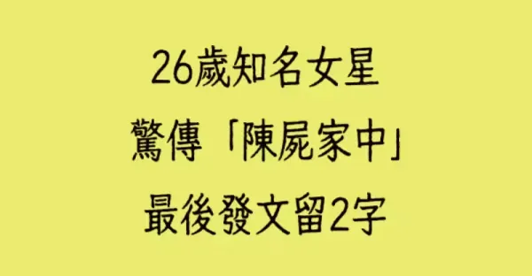 26歲知名女星驚傳「陳屍家中」最後發文留2字