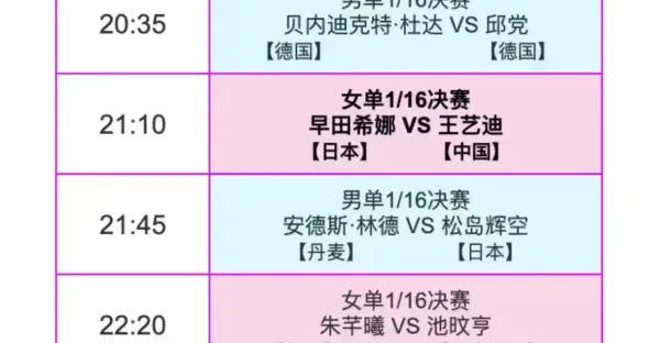 __WTT法國冠軍賽:10月29日賽程出爐,王藝迪早田希娜上演焦點戰鬥