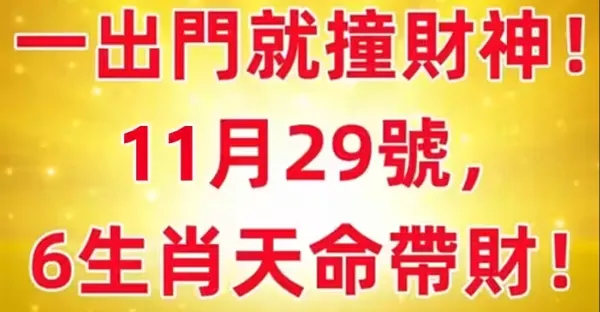 一出門就撞財神!11月29號 ,6生肖天命帶財