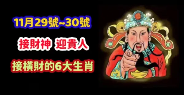 11月29號~30號: 接財神 迎貴人 接橫財的6大生肖