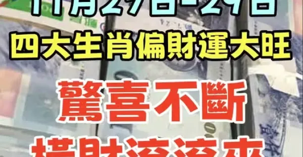11月27日到29日,四大生肖偏財運大旺,驚喜不斷,橫財滾滾來