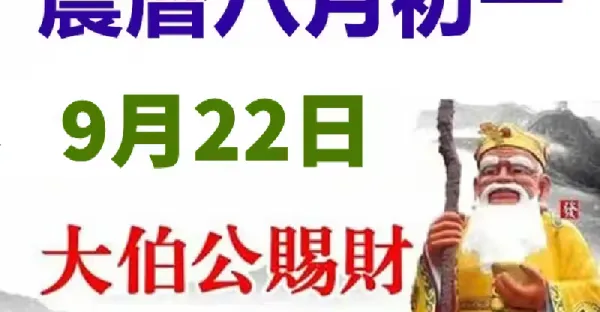 農暦八月初一(9月22日)大伯公賜財,六大生肖接財接吉