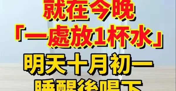 別不信!就在今晚「一處放1杯水」明天「十月初一」睡醒後喝下,招橫財走好運!