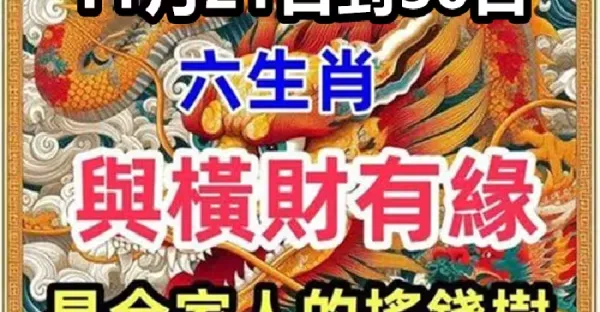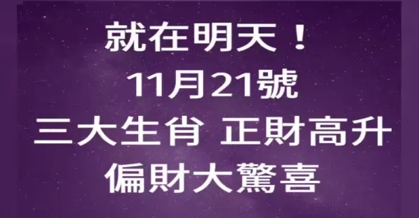 明天 「 11月21號 」 三生肖 橫財大旺!
