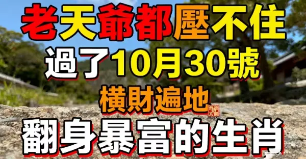 老天爺都壓不住,過了10月30號橫財遍地,翻身暴富的生肖