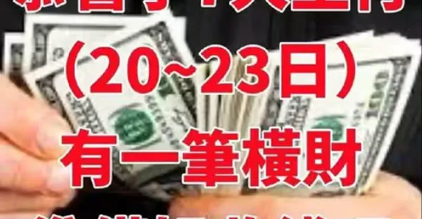 恭喜了7大生肖,在未來三天( 10月20~23日)即將有一筆橫財,準備好收錢吧
