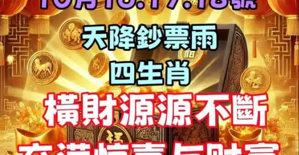 10月16.17.18號天降鈔票雨,四生肖橫財源源不斷,充滿驚喜與財富!
