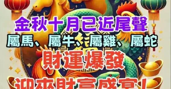 金秋十月已近尾聲,屬馬、屬牛、屬雞、屬蛇財運爆發,迎來財富