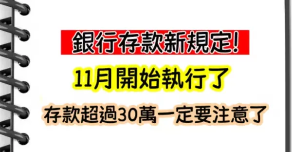 銀行存款新規定!11月開始執行了,存款超過30萬一定要注意了