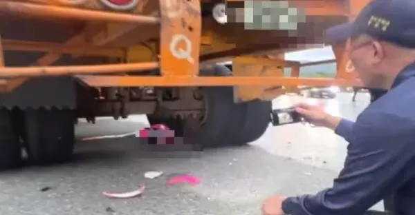 瑞芳驚傳死亡交通事故!機車騎士捲入貨櫃車底 遺留血跡安全帽碎裂