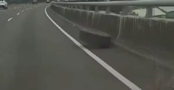 台74線驚魂!曳引車「輪胎突飛出」 百公斤輪胎砸2車