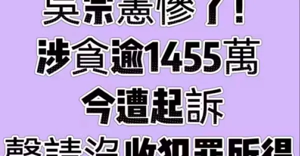 吳宗憲慘了!涉貪逾1455萬 今遭起訴、聲請沒收犯罪所得!