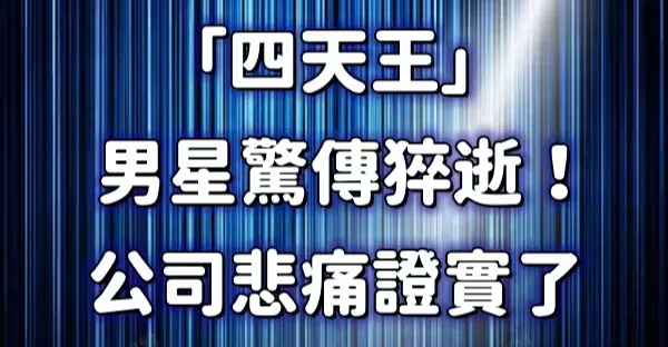 快訊/「四天王」男星驚傳猝逝!公司悲痛證實了!!
