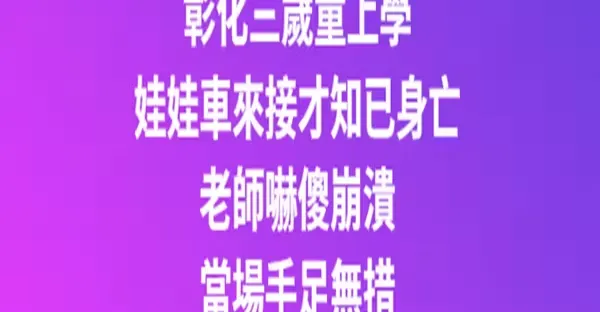 彰化3歲童上學!娃娃車來接才知「已經身亡」! 老師嚇傻崩潰「當場手足無措」