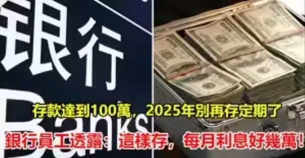 存款達到100萬,2025年別再存定期了!銀行員工透露: 這樣存,每月利息好幾萬~