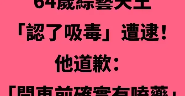 64歲綜藝天王「認了吸毒」遭逮!他道歉:「開車前確實有嗑藥...」