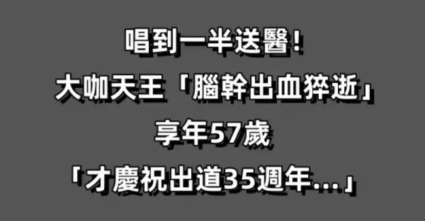 唱到一半送醫!大咖天王「腦幹出血猝逝」享年57歲, 「才慶祝出道35周年…」