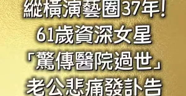縱橫演藝圈37年!61歲資深女星,「驚傳醫院過世」老公悲痛發訃告