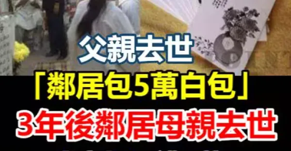 父去世「鄰居包五萬白包」 三年後鄰居母去世,我本想回禮五萬,卻被母親阻止「包2500就好」鄰居收到卻鬆了一口氣!