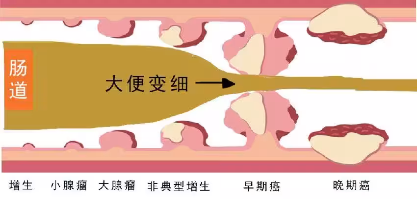 由於腫瘤生長,大便通過時可能會導致腸道破潰出血,血液可黏附於糞便表面。