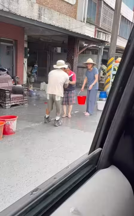 原本色彩繽紛的社區街道,如今儘是灰濁的淤泥,但處處可見民眾揮汗清掃的身影,讓人備受感動,許淑幃更感性表示:「原來超人不用披風,每一個為了光復努力的你們,都值得令人尊敬。