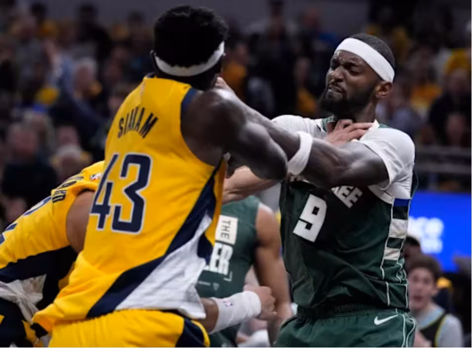 最終,達倫-特里因為出手揮拳,直接被驅逐了,剩下的普林斯、波蒂斯和科林斯各自領了一個技術犯規。 就這一下👇