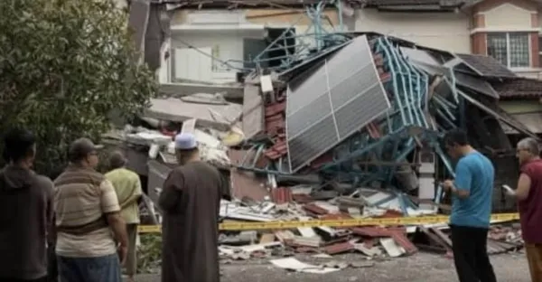 雙層排屋前部突坍塌 3車受損幸無人傷亡