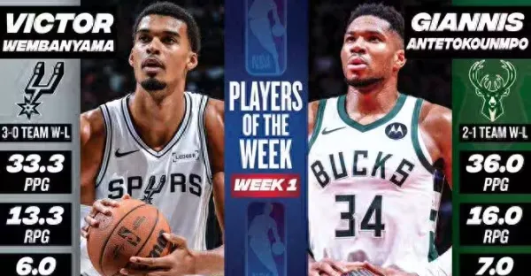 NBA官宣首周最佳:文班字母哥創紀錄當選 東契奇亞歷山大40+無緣