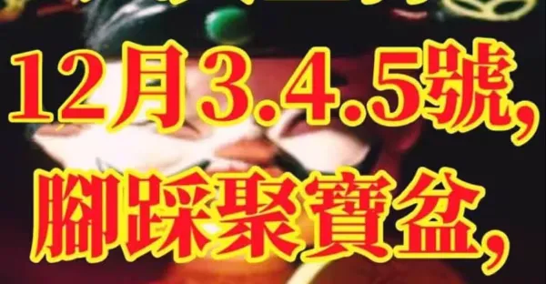 12月3. 4. 5號, 腳踩聚寶盆的6生肖, 開始走好運